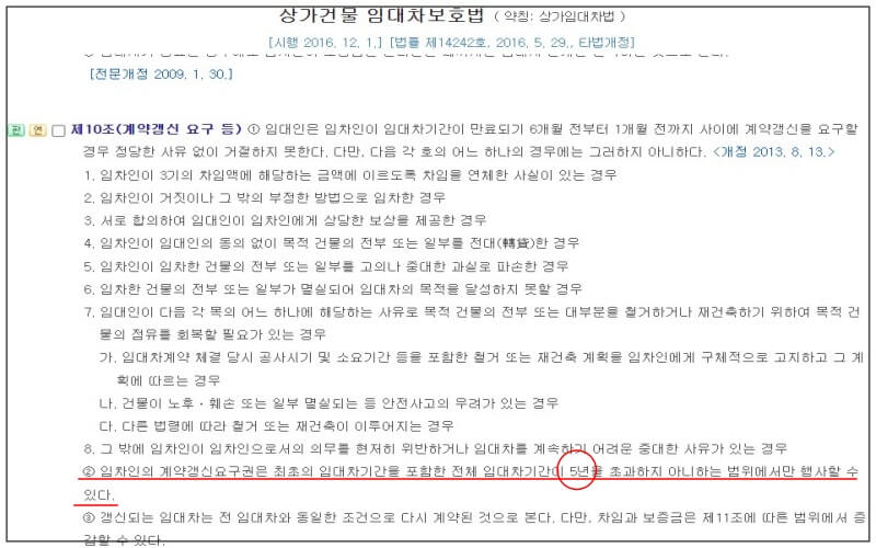 기존 규정은 임대차기간을 5년까지 행사할 수 있었지만 개정된 규정은 임대차기간을 10년간 행사할 수 있게 되었기 때문인데요.