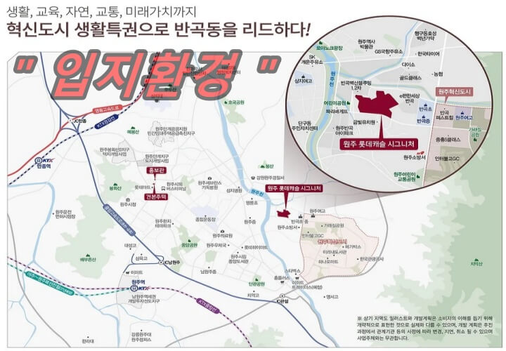강원 원주 롯데캐슬 시그니처 아파트의 공식적인 입지환경입니다.